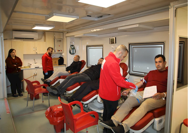 Belediyeden yapılan açıklamaya göre, belediye hizmet binası önündeki kan bağışı aracı, belediye personelinin ve vatandaşların kan bağışını kabul etti.