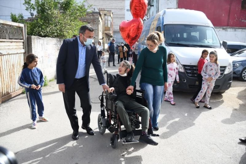 ADANA (AA) - Yüreğir Belediyesi tarafından bedensel engelli 19 yaşındaki gence akülü tekerlekli sandalye hediye edildi.