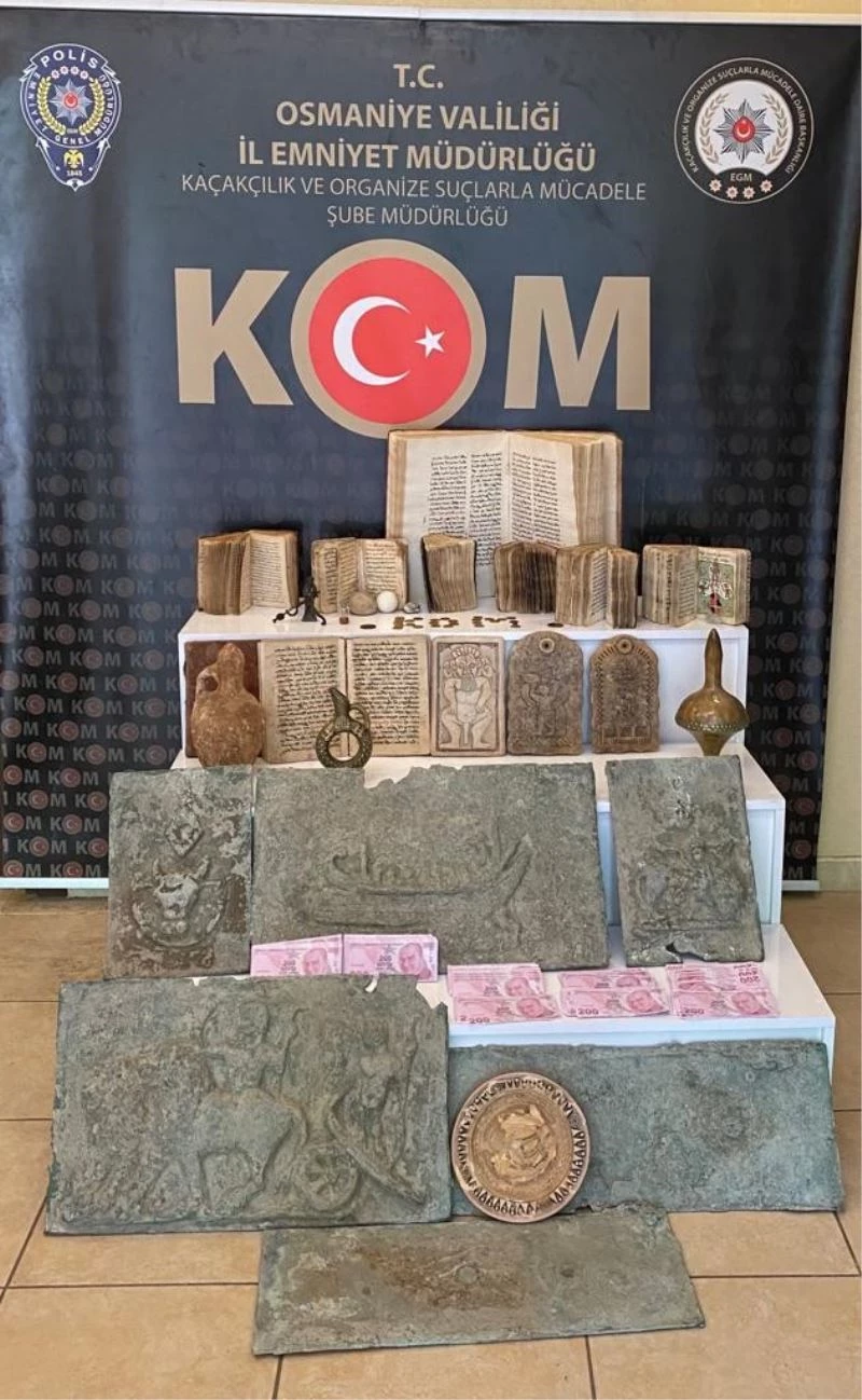 Osmaniye’de düzenlenen operasyonda, yurt dışına kaçırılmak istenen Antik Yunan, Bizans ve Osmanlı dönemlerine ait tarihi eserler ele geçirildi.