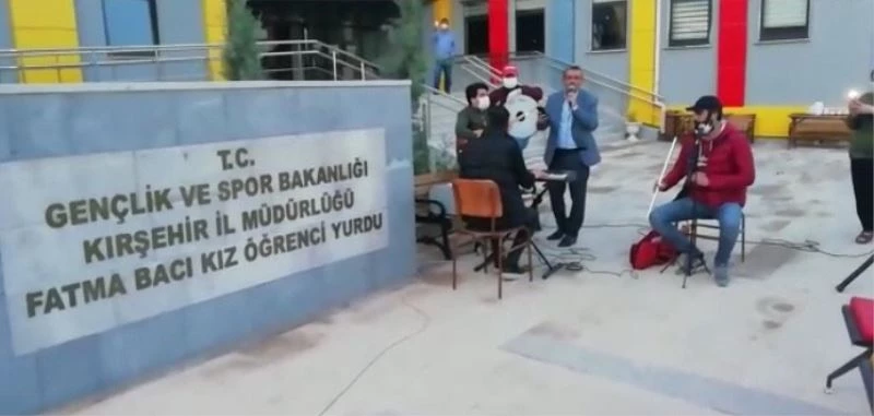 Yurtta kalanların talepleriyle bazı oyun havalarını da seslendiren ekip, keyifli anların yaşanmasını sağladı. Yurdun pencerelerinden izleyen bazı vatandaşlar da cep telefonlarıyla konseri kaydetti.