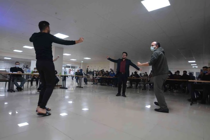 Gecede konuşan Kastamonu Gençlik ve Spor İl Müdürü Reşat Asrak, öğrencilerin mutluluğunun kendilerini de mutlu ettiğini belirterek, “Okullar açıldıktan sonra yurtlarımız da açıldı ve eğitim-öğretim hayatına başlamış olduk, bir normalleşme sürecine kısmen de olsa girdik. Bu süreçte Ekim ayında açılan okullarımız Aralık ayına gelinen süreçte vizelerinizi birçoğunuz bitirdiniz. Bakanlığımız tüm Türkiye’de gençlerimize ‘Biz Bize Akşamları’ tertip edelim, hem eğlenelim hem de en önemlisi kaynaşalım mantığı içerisinde. Tabii bu vesile belki üçüncü ve dördüncü sınıftaki arkadaşlarımız beni tanıyor ancak birinci sınıftaki arkadaşlarımız ile tanışma fırsatımız olmadı. Tabii ki tanışmak, görüşmek, kaynaşmak diyoruz ama Yunus Emre’nin bir sözü vardır, aslında o söz benim hayat felsefemdir. Yunus Emre sözünde ‘gelin tanış olalım, işi kolay kılalım. Sevelim sevilelim dünya kimseye kalmaz’ diyor. Her bir mısrası her bir dizesi aslında bir kitap konusu. Biz de bu vesileyle geldik sizlerle, tanımayanlarla tanışmak, daha fazla kaynaşmak amacıyla buradayız” dedi.