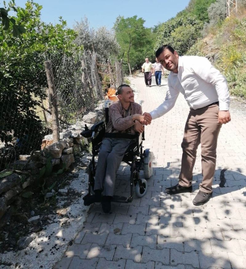 Doğuştan yürüme engelli Ali Ceren’in (24) tek hayali akülü bir arabaydı. Ancak maddi imkansızlıklar nedeniyle alamıyordu. Ali’nin bu durumu, yaptığı yardımlarla bilinen Karşıyaka Mahallesi Muhtarı Mehmet Suna’ya iletildi. Konuyla hemen ilgilenen muhtar Mehmet Suna, sosyal medya hesabından paylaşım yaparak Ali için akülü bir arabaya ihtiyaç olduğunu takipçilerine duyurdu. Kısa süre sonra Gaziantep’in Nurdağ ilçesinden iş adamı Hüseyin Açıkgöz, akülü arabayı temin ederek Ali’ye teslim edilmek üzere muhtara gönderdi.