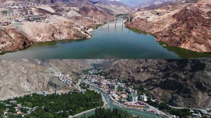Artvin’de su tutma işlemi devam eden Yusufeli Barajı’nde su seviyesi 126 metreye ulaşırken, ilçe merkezi tamamen sulara gömüldü. İlçe merkezinin eski ve son hali fotoğraf karelerine yansıdı.
