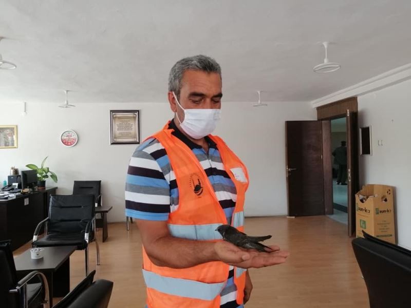 Çorum’un Sungurlu ilçesinde yuvalarından düşen yavru ebabil kuşları bakıma alındı.
