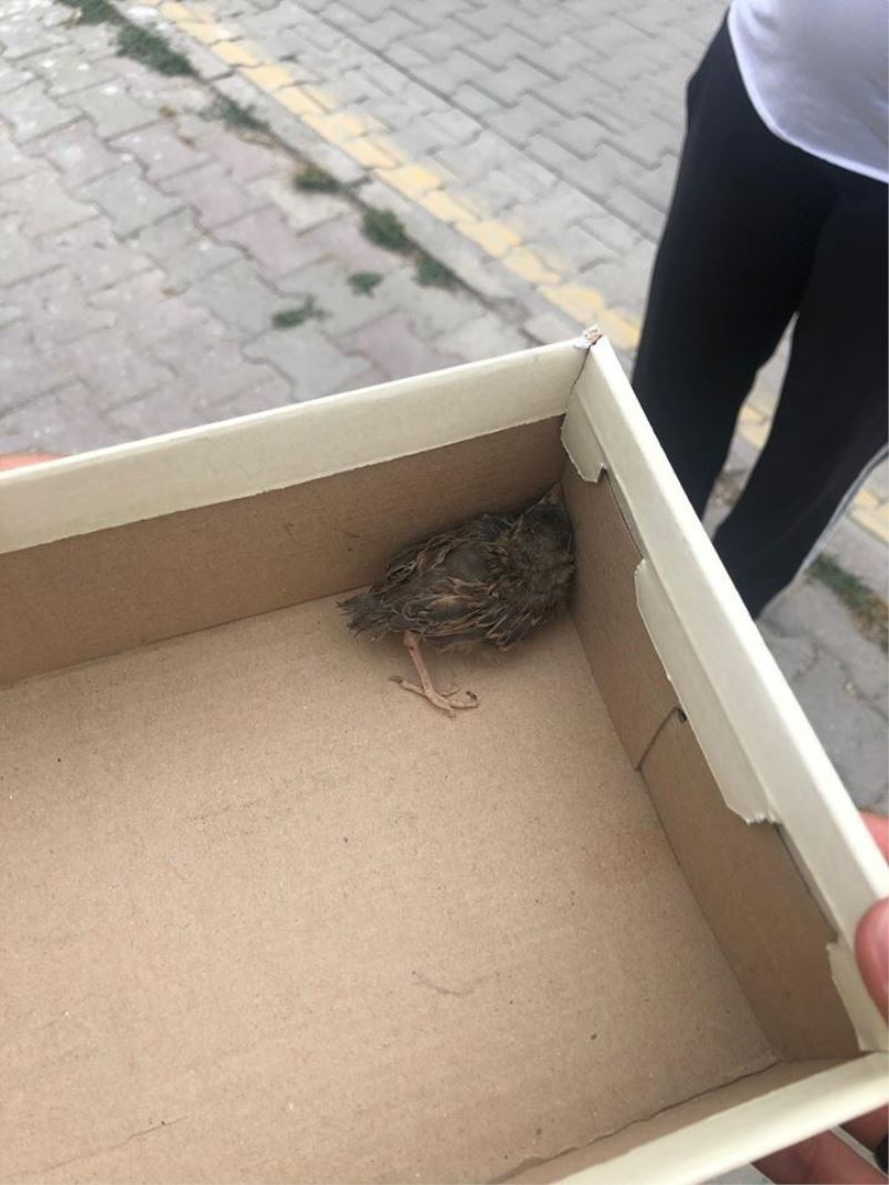 Edinilen bilgiye göre, Aktaş mahallesinde bulunan elektrik direğinin üzerindeki yuvadan düşen yavru serçe kuşunu gören vatandaşlar durumu itfaiye ekiplerine haber verdi. Olay yerine gelen ekipler, serçenin sağlık durumunu kontrol ettikten sonra elektrik dağıtım şirketinden yardım istedi. Herhangi bir yarası olmayan ve henüz yavru olduğu için uçamayan serçe, elektrik dağıtım şirketinin getirdiği vinç yardımıyla yuvasına geri bırakıldı.
