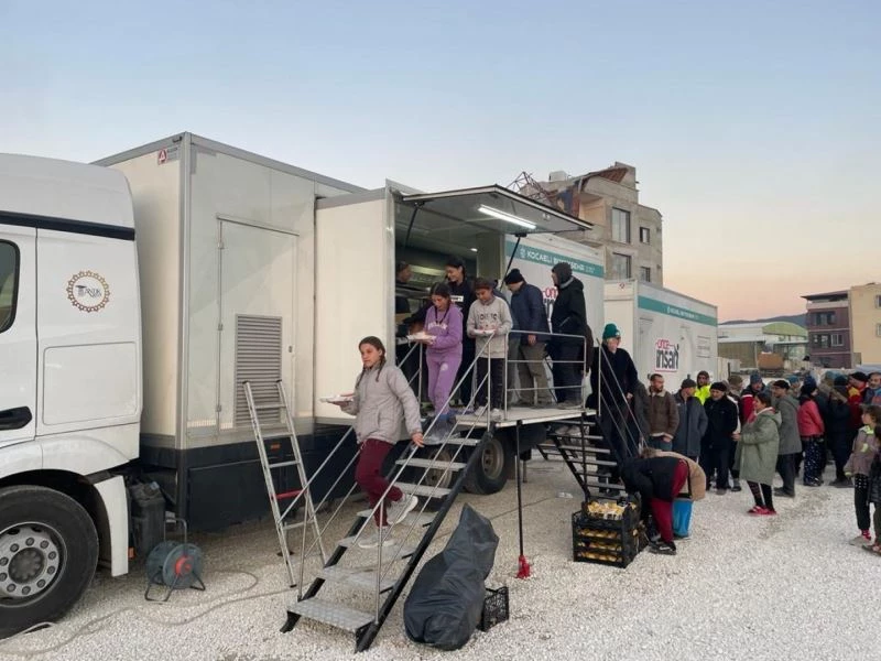 Kocaeli Büyükşehir Belediyesi ekipleri, Kahramanmaraş ve Hatay’da 700 bin kişilik çorba, 382 bin hazır gıda, 200 bin ekmek, 72 bin kase sıcak yemek ve 30 bin içme suyu ikramı yaptı.
