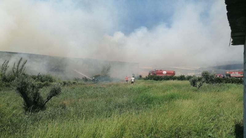 Yüzlerce ton hayvan yeminin bulunduğu depo alev alev yandı