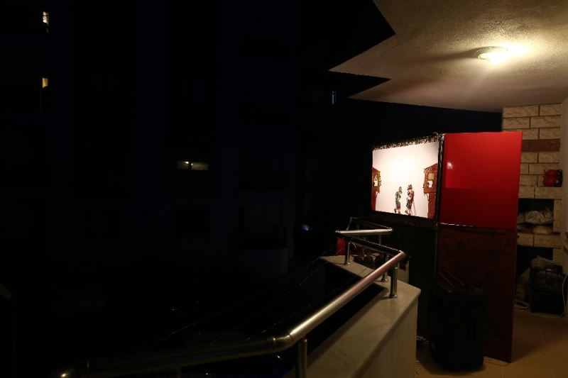 Yüzlerce yıllık Karagöz-Hacivat oyununu evinin balkonundan komşularına sahneliyor
