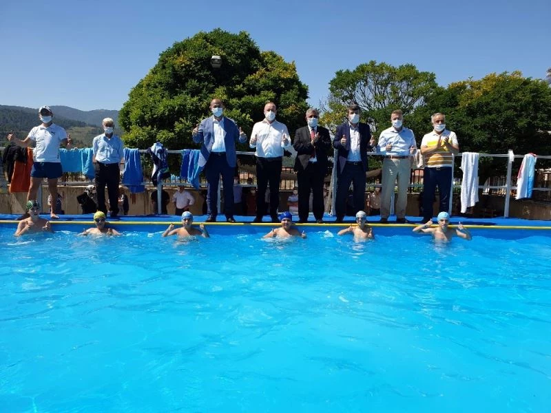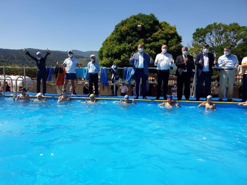 Bursa’nın Orhaneli ilçesinde ilk defa havuz gören çocuklar doyasıya yüzdü.
