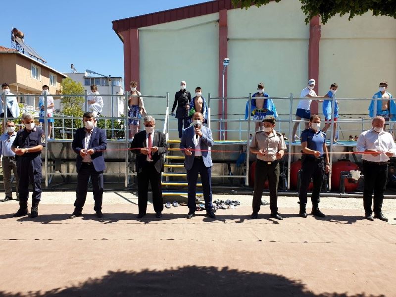 Kaymakam Emir Osman Bulgurlu, yüzme öğrenmeye gelen çocuklara başarılar dilerken, pandemi sürecinde korona virüsüne karşı öğrencileri uyardı. Bulgurlu, yüzmeyi öğrenen çocukları kaymakamlığa davet etti.