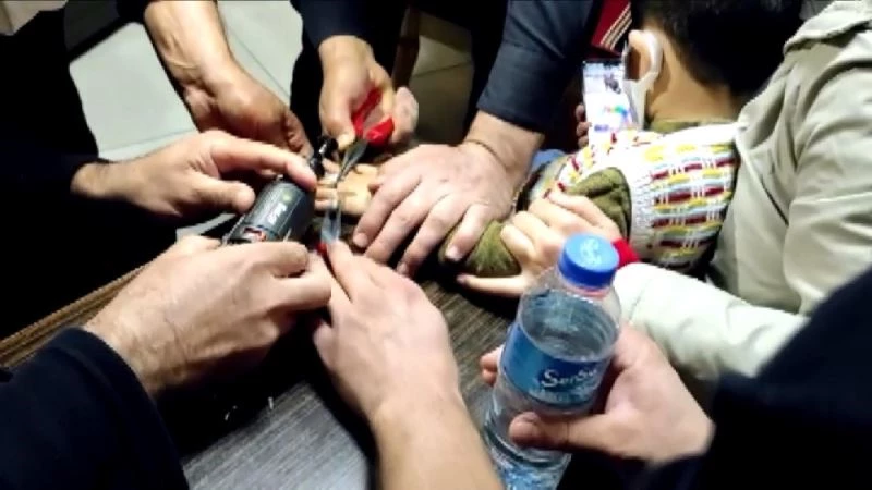 Adıyaman merkez Mehmet Akif Mahallesi’nde 3 yaşındaki D.B., evdeki metal pulu ‘yüzük’ diye parmağına taktı. Taktığı pulu bir süre sonra çıkartmak isteyen çocuk, pulu çıkartamayınca anne ve babasına söyledi.