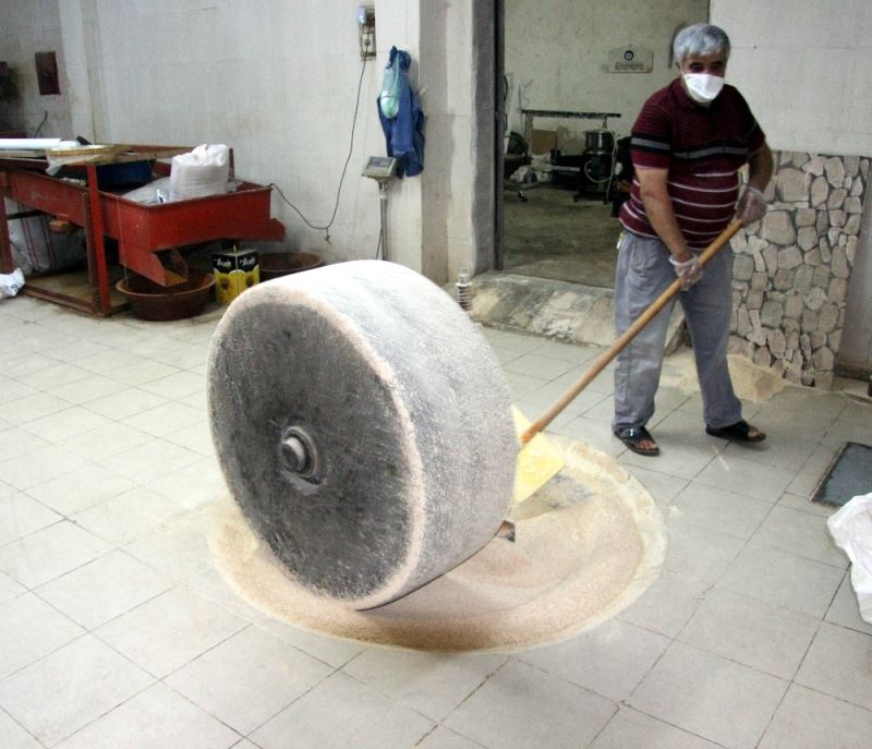 Kilis’te geçmişi yüzyıllara dayanan devlip ile buğday dövülerek, geleneksel keşkek yemeğinin ana malzemesi dövme üretiliyor.