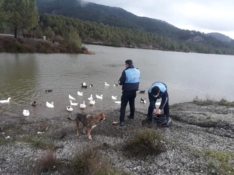Bu kapsamda Muğla Büyükşehir Belediyesi Zabıta ekipleri, hafta sonu sokağa çıkma yasağı nedeniyle Ula Göleti mesire alanında bulunan sevimli can dostların yanındaydı. 56 saatlik sokağa çıkma yasağında Ula Göleti mesire alanında bulunan ördek ve köpekler Büyükşehir Belediyesi Zabıta ekiplerince beslendi. Ayrıca Büyükşehir Zabıta ekiplerince göletin birçok noktasına sevimli can dostları için mama ve su bırakıldı.