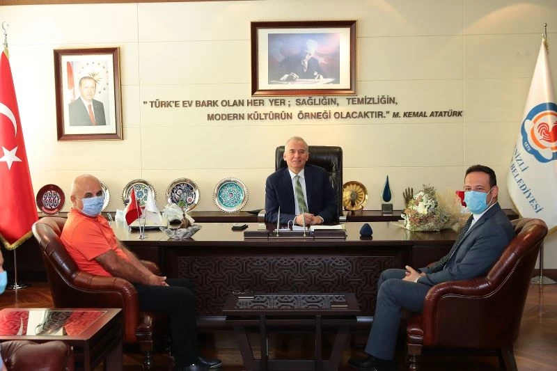 Denizli Büyükşehir Belediyesi Zabıta Dairesi Başkanlığı, teşkilatın 195’nci kuruluş yıldönümü ve Zabıta Haftası nedeniyle Denizli Büyükşehir Belediye Başkanı Osman Zolan’ı ziyaret etti. Ziyarete Büyükşehir Belediyesi Zabıta Dairesi Başkanı Özkan Tosun, şube müdürleri ve zabıta personeli katıldı. Daire Başkanı Tosun ziyarette yaptığı konuşmada, Zabıta Haftası dolayısıyla kendilerini kabul eden Başkan Zolan’a teşekkür ederek, "Zabıta teşkilatı olarak bizler şehrimizde yaşayan vatandaşlarımızın sağlık, huzur ve esenliği için 7x24 hizmet etmekteyiz. Belediyemiz ile vatandaşlarımız arasında köprü vazifesi gören teşkilatımız gücünü yasalarımızdan desteğini de siz değerli Büyükşehir Belediye Başkanımızdan almaktadır. Bu anlamda çalışmalarımızda bizlere vermiş olduğunuz desteklerden dolayı çok teşekkür ediyorum. Bu vesileyle teşkilatımızın 195. kuruluş yıldönümünü kutluyorum" dedi.