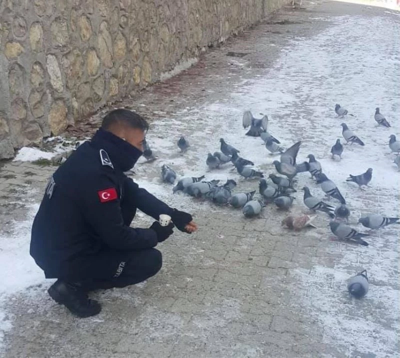 Bilecik’te soğuk hava şartlarına ayak uydurmakta ve yem bulmakta güçlük çeken güvercinlere duyarlı zabıtalar tarafından her gün yem atılıyor.