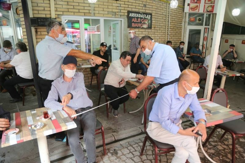Zabıta Müdürlüğü ekipleri gerçekleştirdiği denetimlerde lokanta ve kahvehanelerin hijyen kurallarına uygunluğunu, koronavirüs tedbirlerinin alınıp alınmadığını ve masalar arasındaki sosyal mesafe kuralları gibi önemli hususları inceledi. Özellikle iş yerlerinde ateş ölçer ve dezenfektan bulundurulmasını kontrol eden ekipler, masalar arasında 1,5 metre olması gereken sosyal mesafeyi ölçerek kurala uymayan iş yerlerini uyardı.