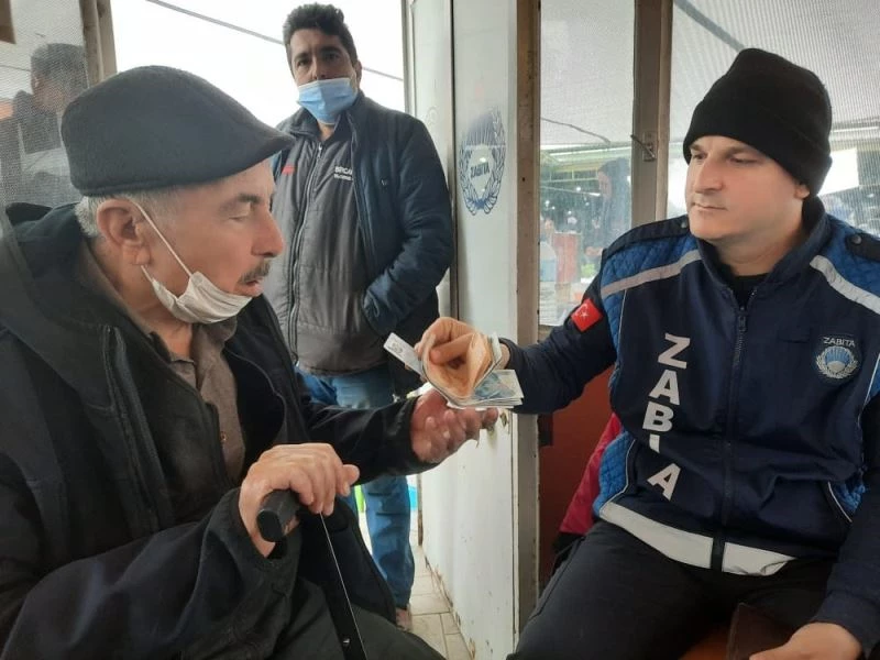 Balıkesir’in Burhaniye Belediyesi zabıta ekipleri pazaryerinde buldukları ve içerisinde 2 bin 300 TL olan cüzdanı sahibine teslim etti.