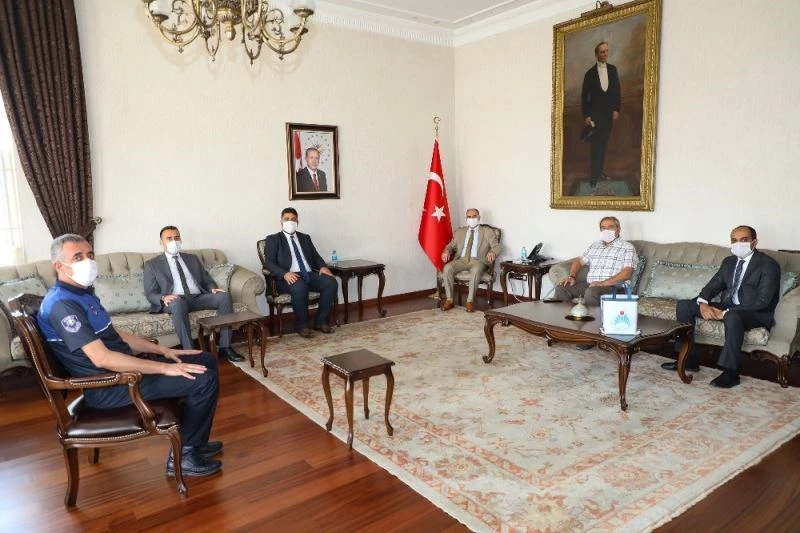 Konya Büyükşehir Belediyesi ile merkez ilçe belediyelerinin zabıta teşkilatları, Zabıta Haftası dolayısıyla Konya Valisi Vahdettin Özkan ve Konya Büyükşehir Belediye Başkanı Uğur İbrahim Altay’ı ziyaret etti.