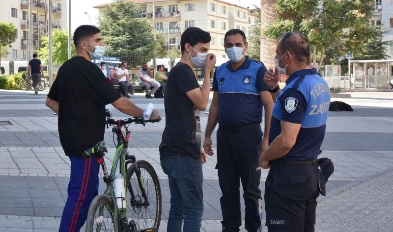 Zabıtadan yaya yoğunluğu olan bölgelerde maske kullanımı ve sosyal mesafe uyarısı