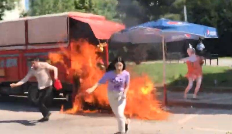 Kocaeli’nin İzmit ilçesinde yol kenarına çekerek karpuz satışı yapan kamyonetinin zabıta ekiplerince kaldırılmasına kızan şahıs, benzin dökerek aracını ateşe verdi. Olay sırasında şahsın yanında bulunan kızı parlayan alevlerden son anda kaçtı.