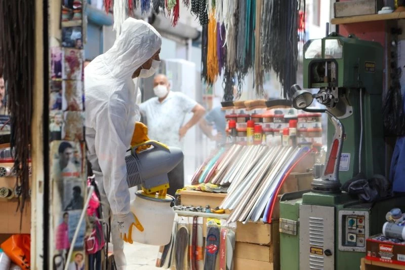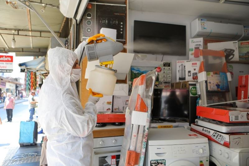 Zafer Çarşısında düzenli dezenfeksiyon çalışması yapılıyor