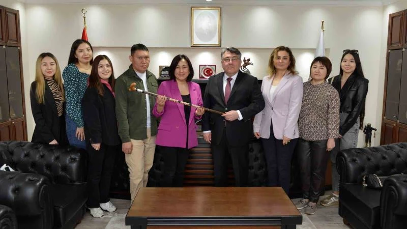 Görüşmenin ardından Rektör Özölçer, Kazak Amerikan Özgür Üniversitesi Rektörü Aidar Mambetkaziev’e ulaştırılmak üzere ZBEÜ’nün Ahşap Kültürü Uygulama ve Araştırma Merkezinde hazırlanmış olan Devrek bastonu takdim etti.