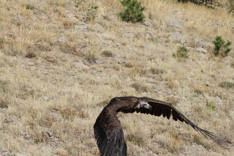 Ankara’nın Beypazarı ilçesinde zirai ilaçlama nedeni ile zehirlenen kara akbaba, Soğuksu Milli Parkı’nda doğaya salındı.