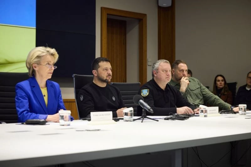 Avrupa Birliği (AB) Komisyonu Başkanı Ursula von der Leyen, 9 Mayıs Avrupa Günü dolayısıyla Ukrayna’nın başkenti Kiev’de Ukrayna Devlet Başkanı Vladimir Zelenskiy ile bir araya geldi. Zelenskiy ve von der Leyen görüşme sonrası ortak basın toplantısı düzenledi. Toplantının ardından Zelenskiy ve von der Leyen, Ukrayna’ya karşı işlenen savaş suçları için özel mahkeme kurulmasına yönelik oluşturulan ortak birliğin liderleriyle çevrimiçi olarak toplantı gerçekleştirdi.