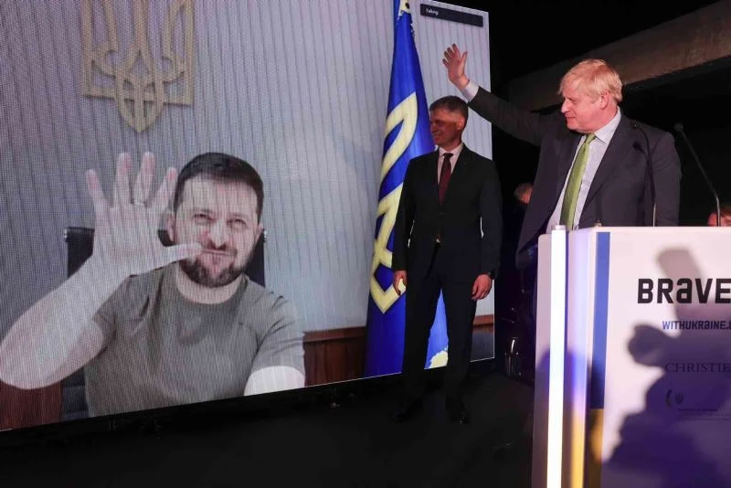 Müzayedeyi yöneten İngiltere Başbakanı Johnson, Zelenskiy’yi "modern zamanların en inanılmaz liderlerinden biri" olarak nitelendirerek satışa sunulan parçaların paha biçilenden daha yüksek bir fiyata gitmesi gerektiğini söyledi. Johnson, "İster Zelenskiy’nin 50 bin sterlinlik poları için teklif veriyor olun, ister Belediye Başkanı Klitschko ile bir Kiev turu için teklif veriyor olun, ben buradan çok daha yüksek teklifler istiyorum. Belediye Başkanı Klitschko ile bir Kiev turu yaptım, güzel bir şehir. Buna değer" şeklinde konuştu. Johnson, "Bu gece Ukrayna’yı destekleyin dostlarım, böylece büyük antik Avrupa başkenti Kiev bir daha asla tehdit edilemez ve Ukrayna bir kez daha bütün ve özgür olabilir" dedi.