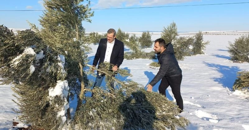 Kilis’te, zeytin ağaçlarının dalları yoğun kar yağışına dayanamayarak kırıldı.