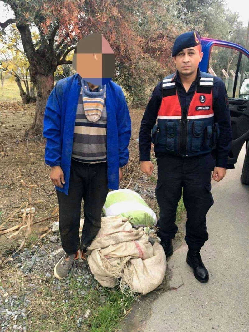 Aydın İl Jandarma Komutanlığı, asayiş ekiplerince tarımsal ürün hırsızlığının engellenmesine yönelik çalışmalarına aralıksız devam ediyor. Edinilen bilgiye göre Germencik ilçesi Mursallı Mahallesi’nde jandarma ekipleri devriye esnasında M.Ç. isimli şahsın bahçesinden C.C. (25) isimli şüpheli şahıs, hırsızlık amacıyla topladığı zeytinler ile birlikte suçüstü yakalanarak gözaltına alındı. Ele geçirilen çuval içerisindeki yaklaşık 30 kilogram toplanmış zeytin sahibine teslim edilirken, yakalanan şahıs hakkında adli işlem başlatıldı.