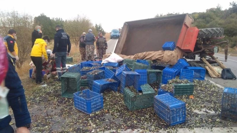 Zeytin işçilerini taşıyan traktör devrildi: 5 yaralı