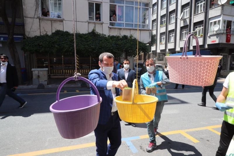 Zeytinburnu Belediyesi, korona virüs tedbirleri kapsamında Ramazan Bayramı süresince uygulanan sokağa çıkma kısıtlamasında evlerindeki vatandaşlara fesleğen dağıttı. Zeytinburnu Belediye Başkanı Ömer Arısoy, sokak sokak gezerek evlerinin pencere ve balkonlarına çıkan vatandaşların bayramını kutladı. Evlerde kalarak korona virüs sürecini atlatacağımızı söyleyen Başkan Arısoy, sepetlerini uzatan vatandaşlara fesleğen hediye etti. Etkinlik boyunca Zeytinburnu genelinde 14 bin fesleğen dağıtıldığı öğrenildi.