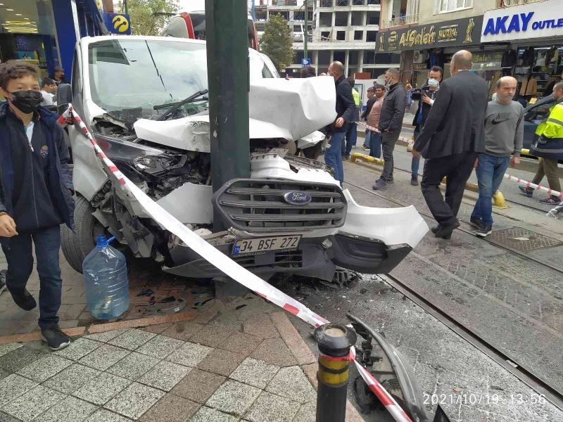 Edinilen bilgiye göre kaza Zeytinburnu Seyit Nizam Mahallesi’nde saat 13.30 sıralarında oldu. Mustafa Sönmez yönetimindeki 34 BSF 272 plakalı Ford marka ticari araç, ters yönde ara sokaktan tramvay yoluna girerken, Bağcılar yönüne giden tramvayla çarpıştı. Akşemsettin ile Mithat Paşa durağı arasında meydana gelen kazada çarpışmanın etkisiyle yön değiştiren araç, elektrik akımını sağlayan direğe çarparak durdu. Kazada şans eseri ölen ya da yaralanan olmazken, ihbar üzerine olay yerine sağlık ve itfaiye ekipleri sevk edildi. Direğe çarpan Ford marka ticari araç paramparça olurken, camları kırılan tramvayda da hasar oluştu. Öte yandan yaklaşık 1 saatlik çalışmanın ardından yol da trafiğe açıldı. Kaza anı ise saniye saniye güvenlik kamerasına yansıdı.