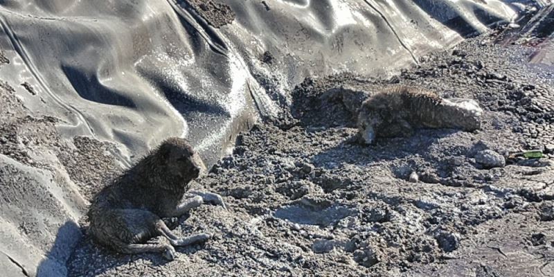 Adıyaman’da petrol sondajı sırasında ortaya çıkan atık bataklığında mahsur kalan köpekler itfaiye ekipleri tarafından kurtarıldı.