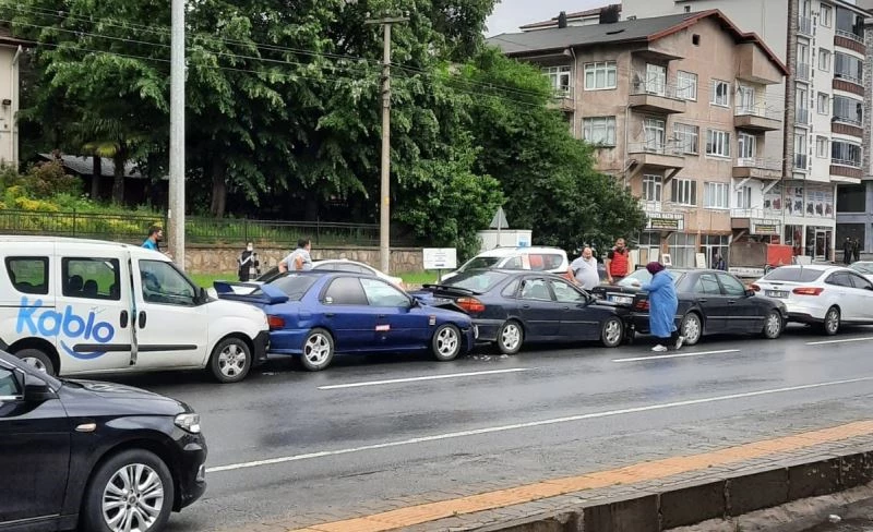 Zonguldak’ın Ereğli ilçesinde yağışlı havanın da etkisiyle zincirleme trafik kazası meydana gelirken 5 araç birbirine girdi.