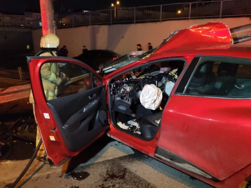 Zincirleme kazada otomobil bariyere saplandı: 1 ağır yaralı