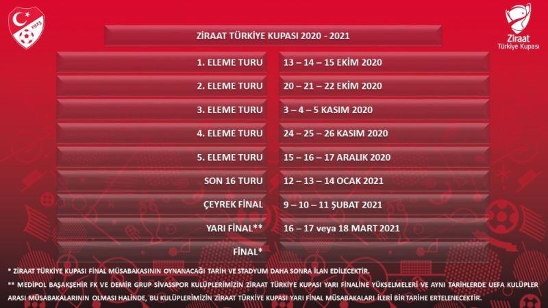 Ziraat Türkiye Kupası tarihleri şöyle: