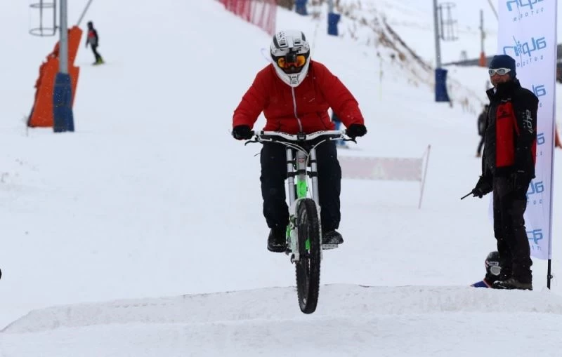 Türkiye’nin gözde kayak merkezlerinden Palandöken bu kez bisiklet tutkunlarına ev sahipliği yaptı. Zirveden bisikletleriyle iniş yapan adrenalin tutkunları yürekleri ağza getirdi.