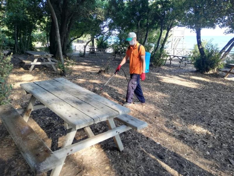 Türkiye’nin en önemli doğal mirasları arasında yer alan ve korona virüs salgınıyla birlikte 1 Haziran’da başlayan yeni dönemde de ziyaretçi rekorları kırmaya devam eden Kuşadası Dilek Yarımadası Milli Parkı’nda dezenfekte çalışmaları günlük olarak yapılıyor.