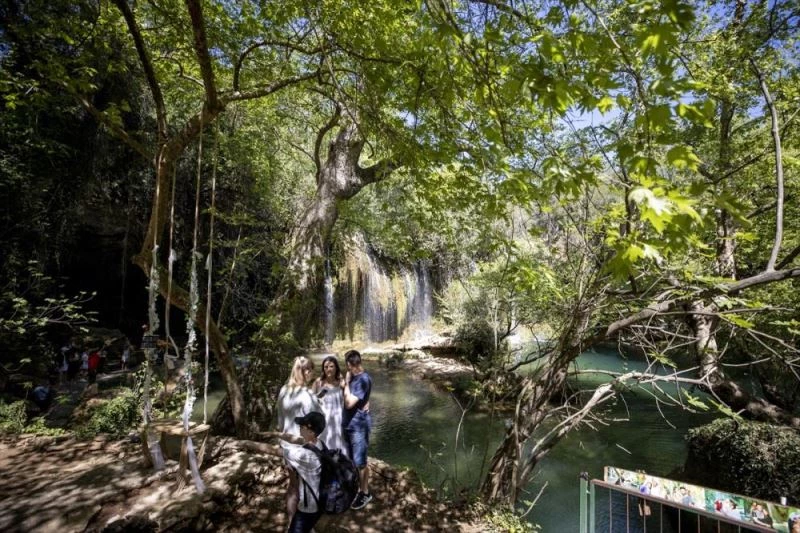 Gelin ve damatların da düğün günlerini ölümsüzleştirmek için gittiği şelale, zaman zaman doğal fotoğraf stüdyosuna dönüşüyor.