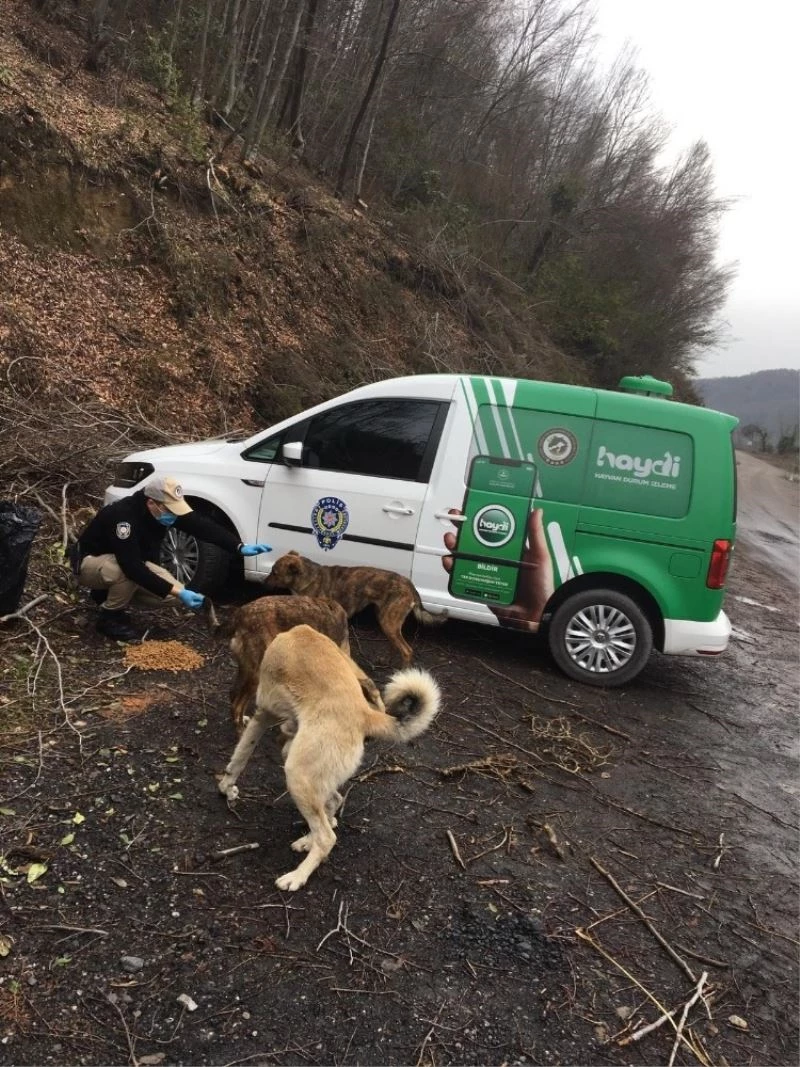 Zonguldak İl Emniyet Müdürlüğü Çevre, Doğa ve Hayvanları Koruma Büro Amirliği (HAYDİ) ekiplerince şehrin farklı noktalarında yaşayan sokak hayvanlarına yiyecek bırakılıyor.