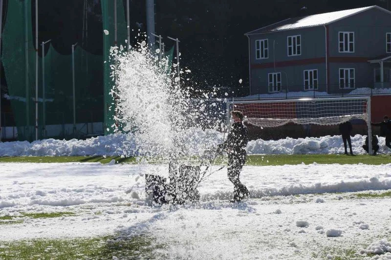 Zeminde gerçekleştirilen kar küreme çalışmaları ise bugün 13.00’de oynanacak maça kadar tamamlanamadı. Maçın hakemi Süleyman Bahadır ve yardımcıları maç saatinde zemine çıkarak incelemelerde bulundu. Sahanın müsabaka oynanmasına müsait olamaması nedeniyle maçı ertelediğini açıkladı.