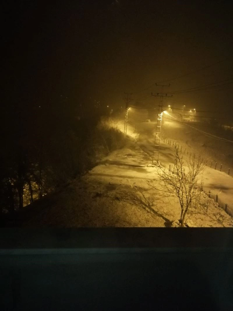 Zonguldak’ın Elvanpazarcık beldesi akşam saatlerinde yağan kar yağışı sonrası beyaza büründü.