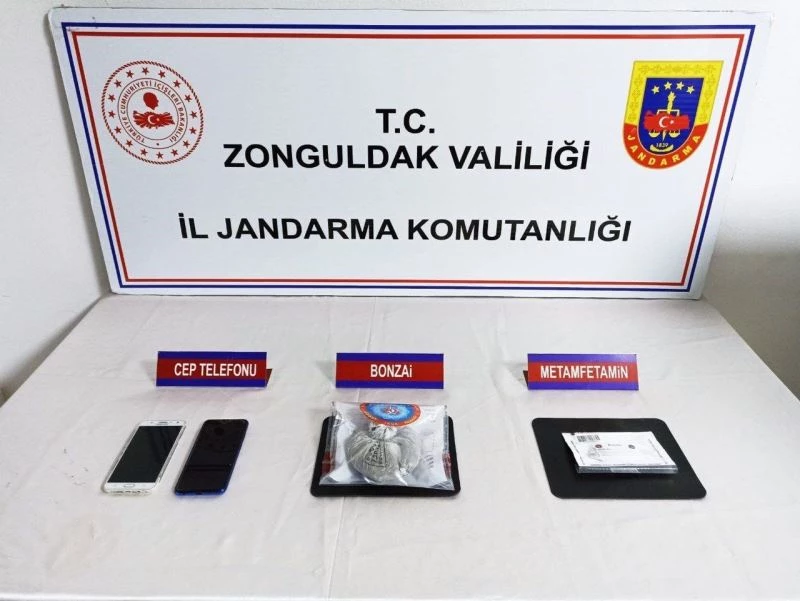 Zonguldak İl Jandarma Komutanlığı ekipleri, uyuşturucu veya uyarıcı madde ticareti yapan ve kullanan şahıslara yönelik fiziki takip neticesinde operasyon gerçekleştirdi. Jandarma ekipleri, yaptıkları aramada 70 gram bonzai, 5 gram metamfetamin, 2 adet cep telefonu ele geçirdi. Gözaltına alınan ve adli makamlara sevk edilen bir kişi çıkarıldığı hakimlikçe tutuklandı.