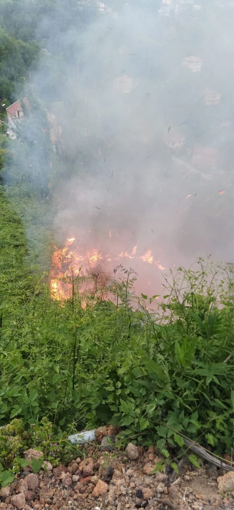 Zonguldak’ın Kilimli İlçesinde çalılık alanda çıkan yangın korkuttu.