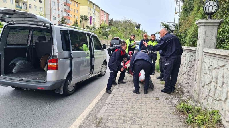 Zonguldak’ın Alaplı ilçesinde kaldırımda motosikletiyle ilerleyen sürücü kaza yaptı. Kazada yaralanan sürücü ambulansla hastaneye kaldırıldı.