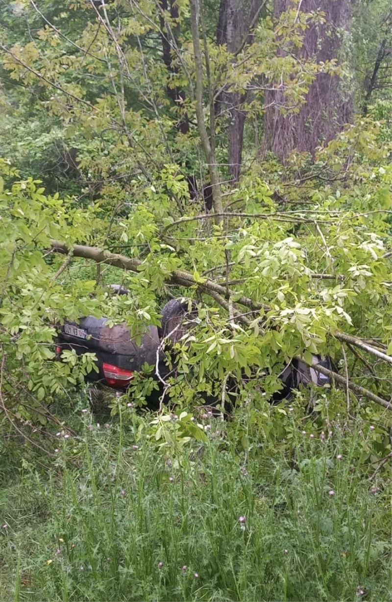 Şarampole savrulan araç ise çekici yardımıyla kaldırıldı.