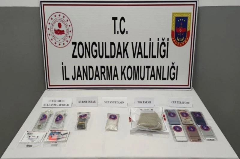 Edinilen bilgiye göre İl Jandarma Komutanlığı ekiplerince Devrek ilçesinde yol kontrolü sırasında durdurulan bir araçta arama yapıldı. Aramada 100 gram metamfetamin, 500 gram toz esrar, 6 gram kubar esrar, 2 adet uyuşturucu kullanma aparatı, 6 adet cep telefonu ele geçirildi. Olayla ilgili 2 şüpheli gözaltına alındı. Şüpheliler ifadelerinin ardından sevk edildiği adli makamlarca tutuklanarak cezaevine gönderildi.