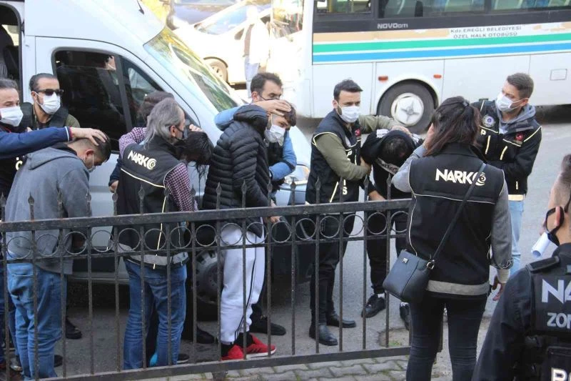 Zonguldak’ın Ereğli ilçesinde düzenlenen uyuşturucu operasyonunda gözaltına alınan 9 kişi adliyeye sevk edildi.